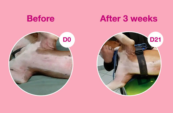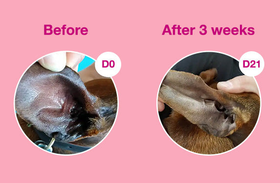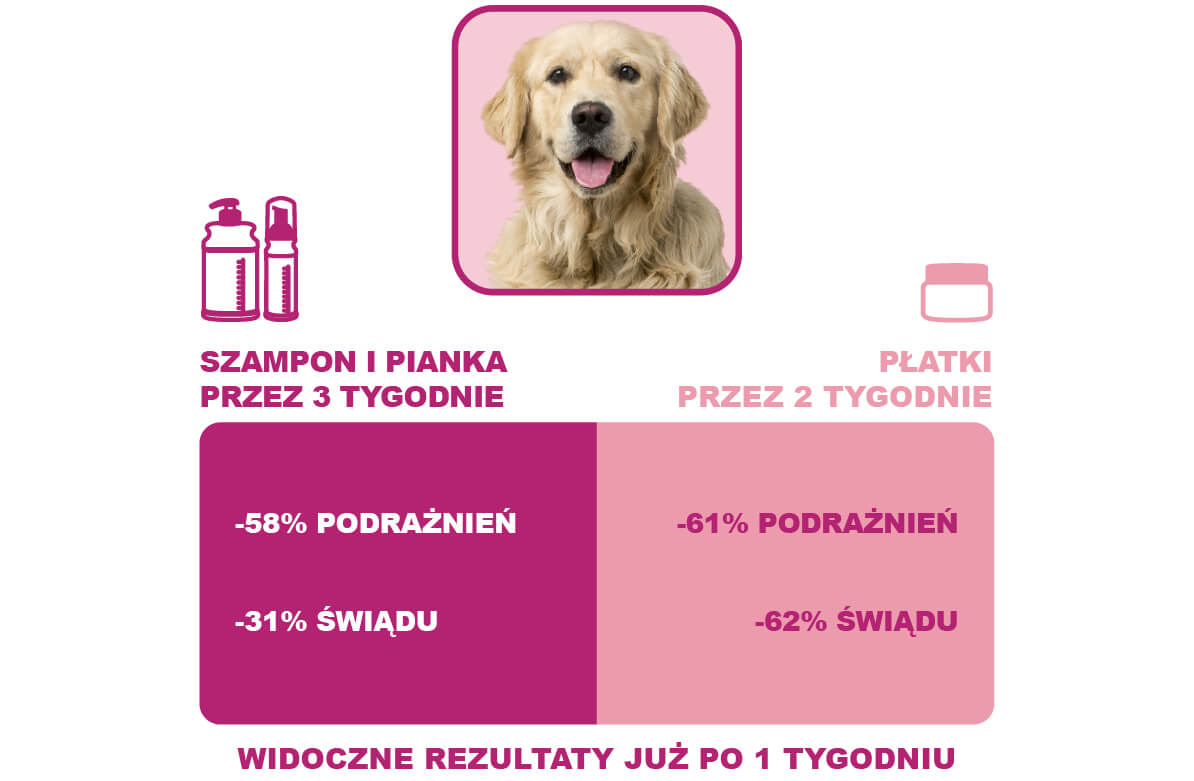 Skóra Twojego pupila jest zaczerwieniona, podrażniona i wygląda na wrażliwą lub alergiczną. DOUXO® S3 CALM przynosi znaczną ulgę już po tygodniu stosowania, a po trzech tygodniach skóra większości zwierzaków wraca do normy. Formuła bez spłukiwania zapewnia przedłużony kontakt z aktywnym składnikiem Ophytrium, zapewniając optymalne działanie.