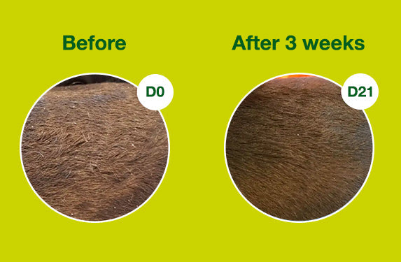 Łojotok u zwierząt domowych może być spowodowany nadmierną produkcją sebum, przez co sierść staje się przetłuszczona w dotyku i wyglądzie. Wykazano, że szampon DOUXO® S3 SEB reguluje tłustą skórę, zapewniając szybką i znaczącą poprawę jakości sierści oraz redukcję wydzielania sebum.**